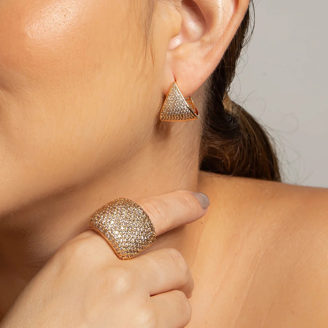 Brinco argola cravejado com zirconia banho ouro 18k
