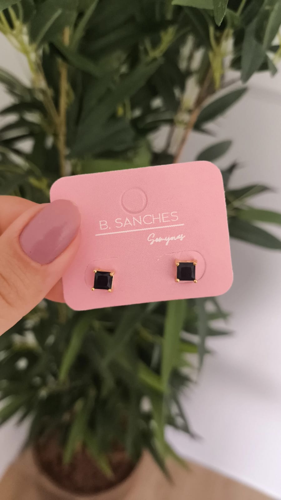 Elegante e minimalista, este brinco pequeno em formato quadrado é a definição de sofisticação discreta. A pedra ônix traz profundidade e contraste, valorizando o design geométrico com um toque moderno e refinado.