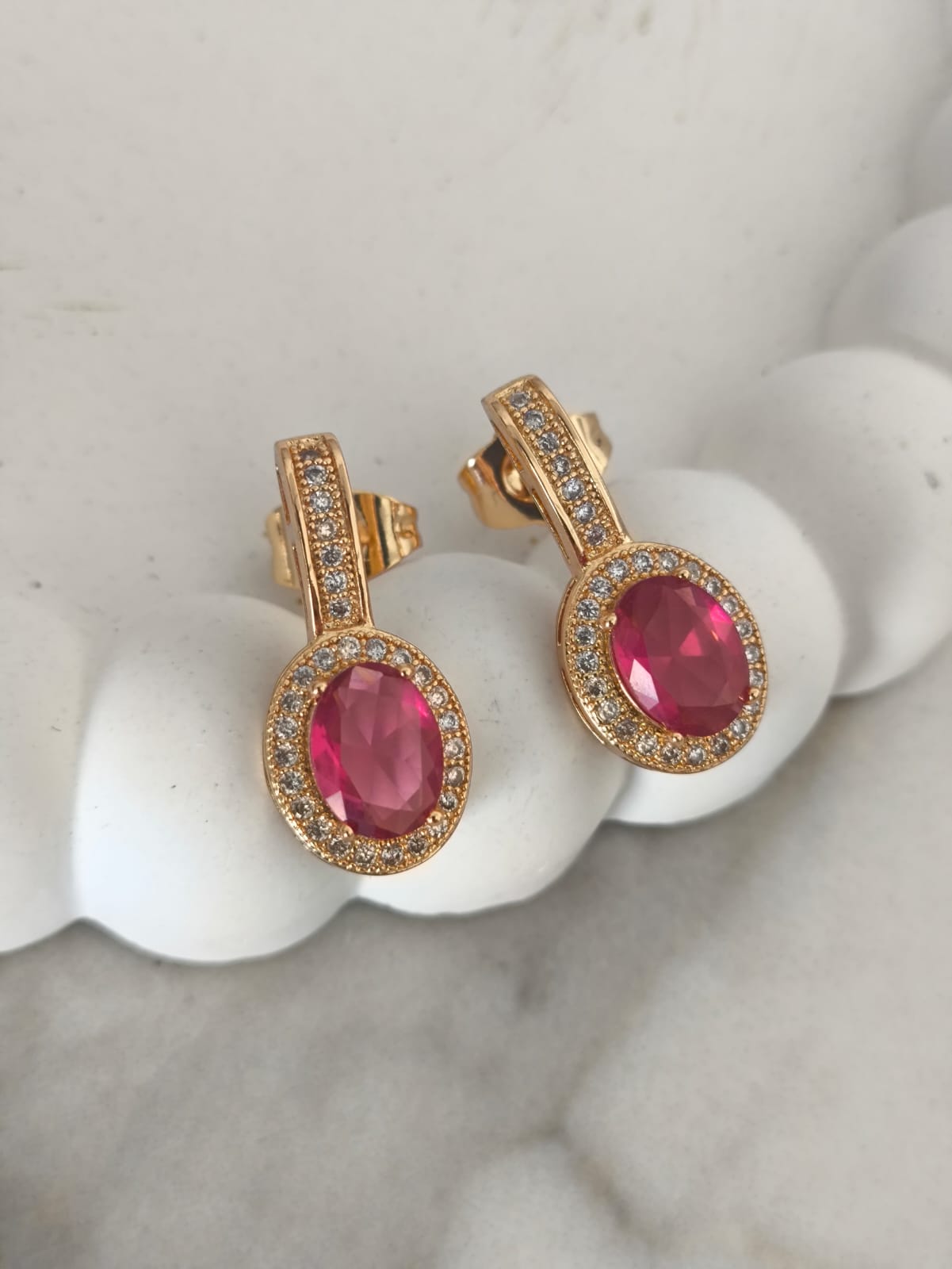 Brinco cravejado zirconia rubi banho ouro 18k