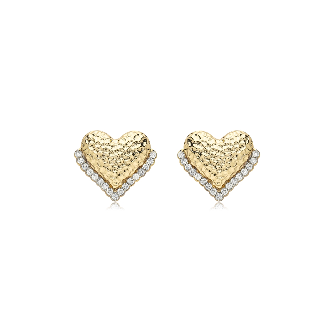Brinco de coração martelado cravejado de zirconia cristal banho em ouro 18k