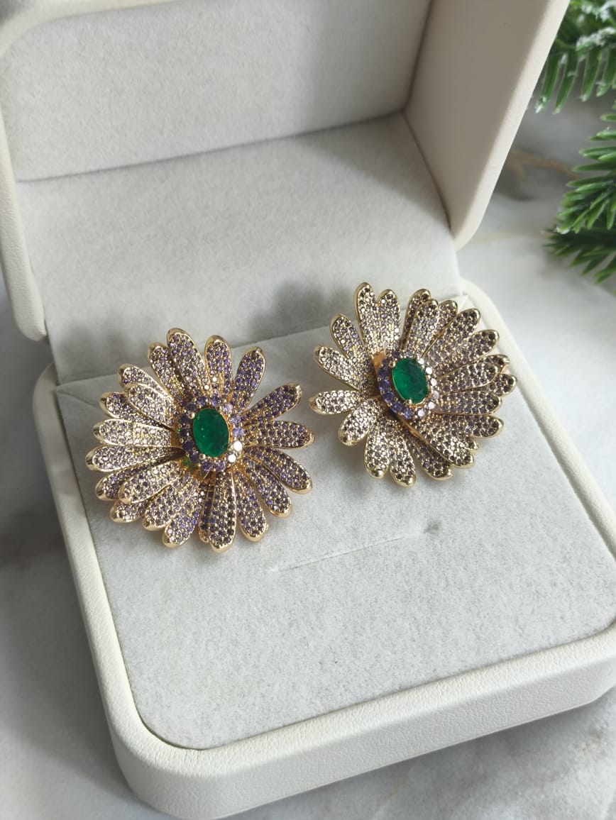 Brinco flor LUXO cravejada banho ouro 18k