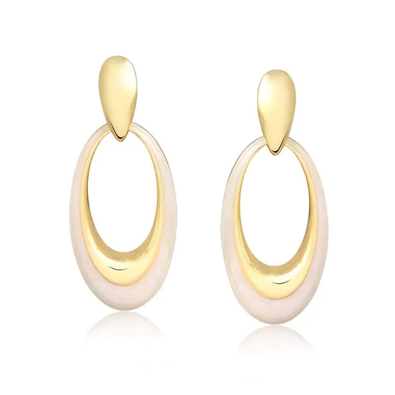 Elegante e contemporâneo, o Brinco Oval com Resina Branca Marmorizada é a escolha perfeita para quem ama peças modernas com um toque de sofisticação. Seu design alongado combina o brilho do banho de Ouro 18k com a delicadeza da resina branca marmorizada, criando um contraste refinado e atemporal.