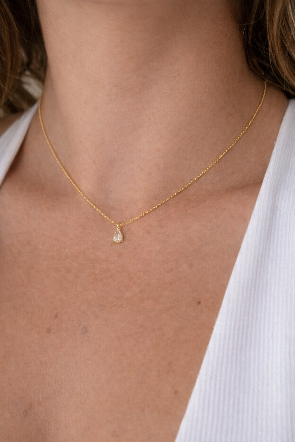 Confeccionado com corrente delicada e pingente em formato de gota, ele traz uma zircônia cristal lapidada, que reflete a luz com elegância e leveza. O tamanho discreto do pingente (0,6 cm) garante um visual delicado, ideal para o uso diário ou para composições com outros colares.