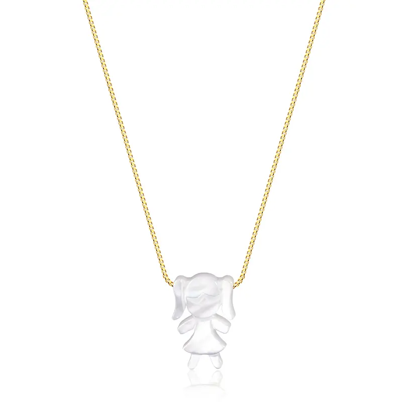 Celebre o amor incondicional e a beleza única da maternidade com este encantador colar banhado a ouro 18K. Seu pingente delicado, feito em madrepérola, traz o formato de um menino ou uma menina, representando o símbolo mais precioso: os filhos. Este acessório sofisticado é a escolha perfeita para quem deseja carregar perto de si a essência da família, com todo o charme e brilho do ouro.