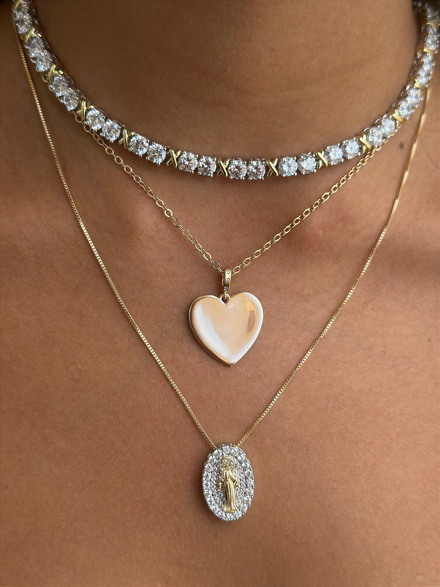 GARGANTILHA NOSSA SENHORA DAS GRAÇAS, COM CORRENTE VENEZIANA 40CM + 5 CM DE AJUSTE.