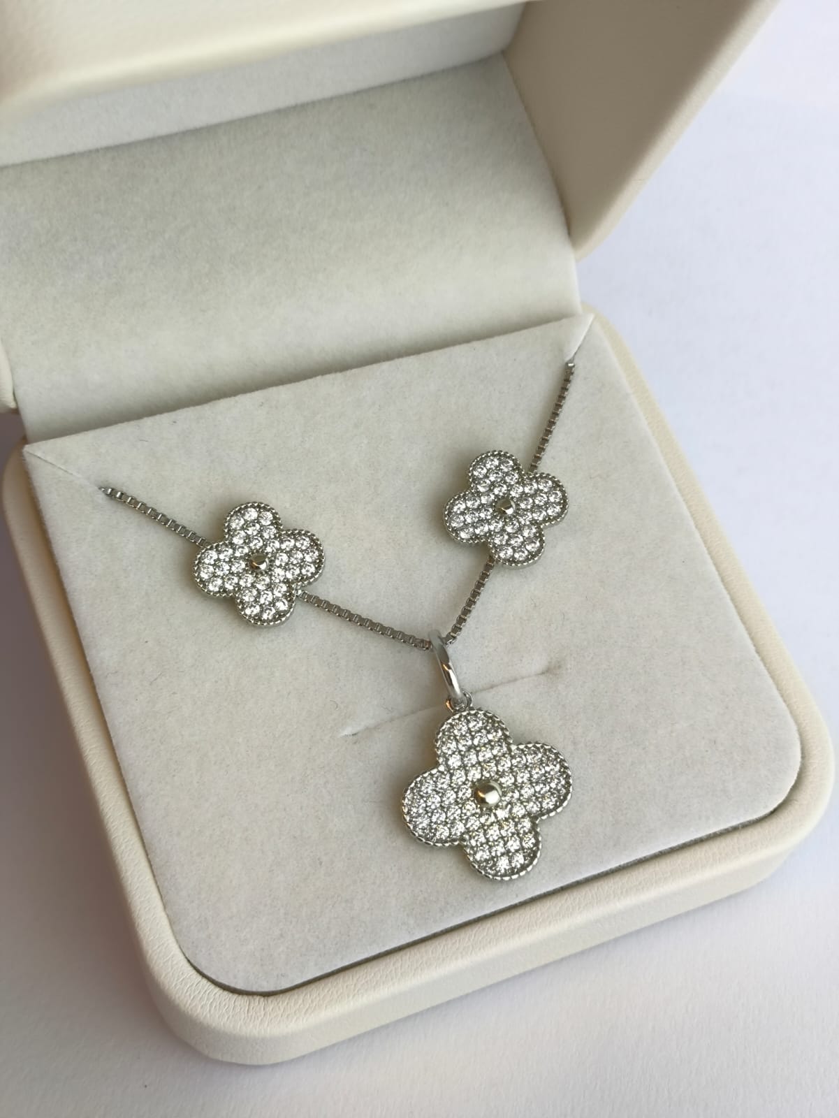 Apresentamos o Conjunto Trevo, uma peça inspirada na alta joalheria que conquistou o coração das famosas! Com um design sofisticado e elegante, esse brinco traz a sorte e a beleza em cada detalhe.