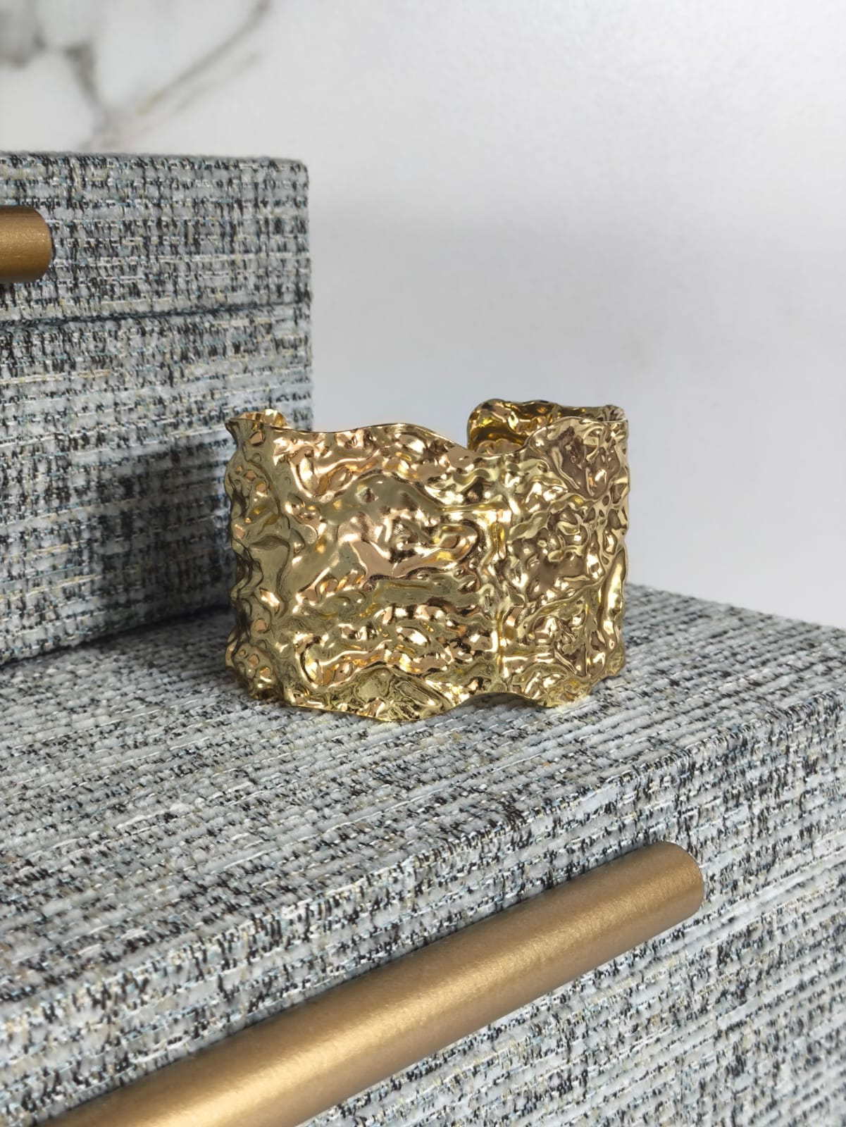 Ideal para ocasioes especiais ou para dar um toque de glamour ao seu dia a dia, este bracelete é versátil e atemporal. A combinação do acabamento metalico e do tamanho ousado garante que ele se torne o ponto focal do seu look, seja para um evento elegante ou para um visual casual-chiq
