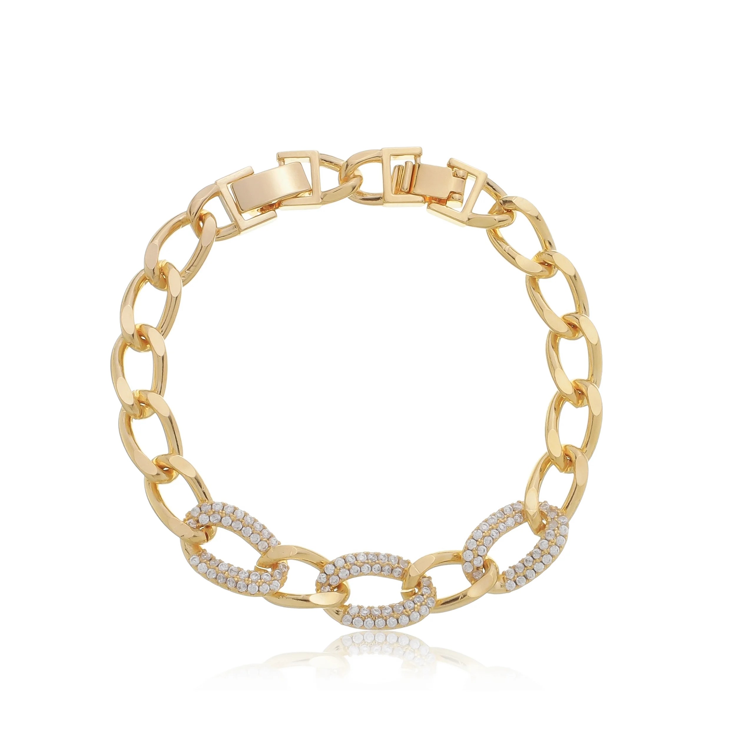 Pulseira de corrente com detalhe cravejeado de zircônia cristal